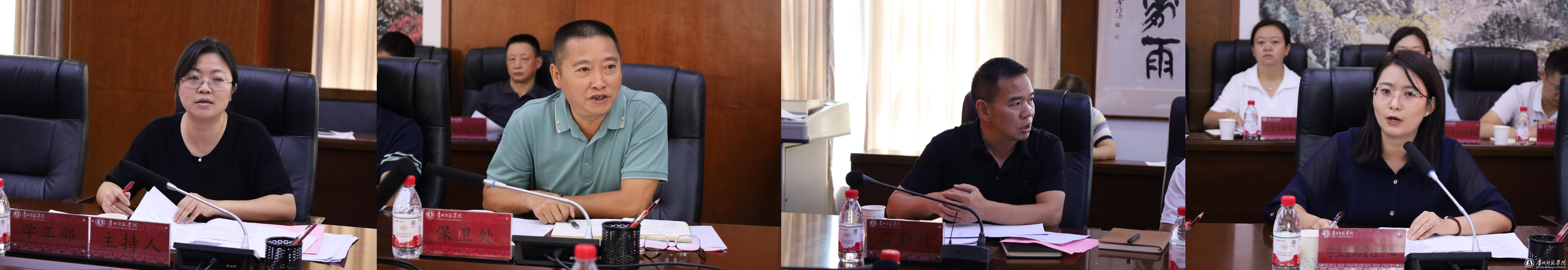 相关职能部门和二级学院结合本单位承担的主要任务,就迎新工作筹备情况和“一站式”学生社区建设进行交流发言。