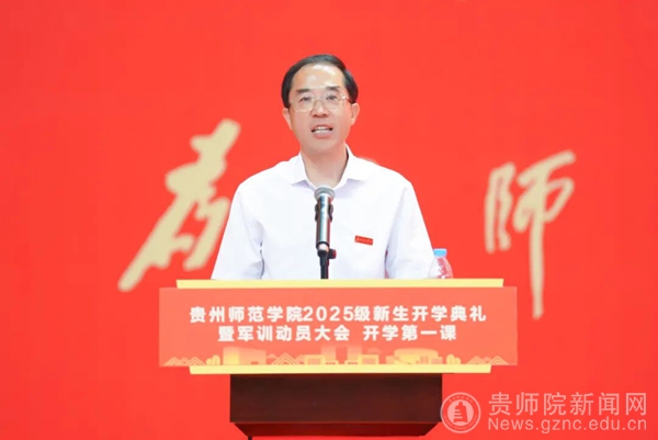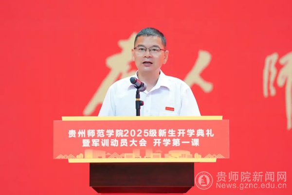 教育是一场温暖的修行,是用生命影响生命,用智慧点燃梦想。教师代表、教务处处长、创新创业学院执行院长杜宏博教授,贵阳市南明小学校长、贵州省优秀教师、优秀校友唐银乔,在校生代表、创新创业学院2022级学生段迪,新生代表、数学与大数据学院2025级李昱霏及军训教官代表,中国人民解放军贵州省乌当区人民武装部朱垚睿依次发言。