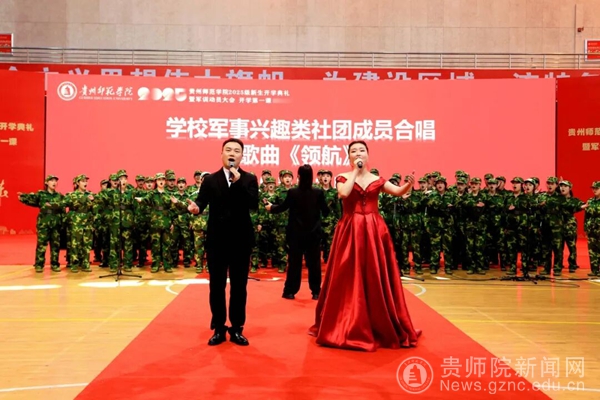 典礼上,校党委书记战勇教授向军训团授团旗;学校军事兴趣类社团成员合唱爱国强军歌曲《领航》。