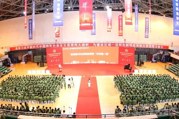 本网讯 秋阳溢彩,惠风和畅。9月8日上午9点,学校举行2025级新生开学典礼暨军训动员大会、开学第一课。2025级的新同学们,踏着曦光而来,携着少年的星辉与远方的山海相聚师院,启幕新篇。