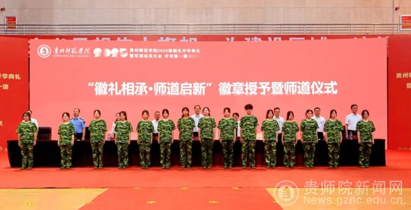 在庄严的国歌声中,开学典礼正式拉开帷幕。会上举行了“徽礼相承·师道启新”徽章授予暨师道仪式,激发新生们作为新师院人的自豪感和归属感。