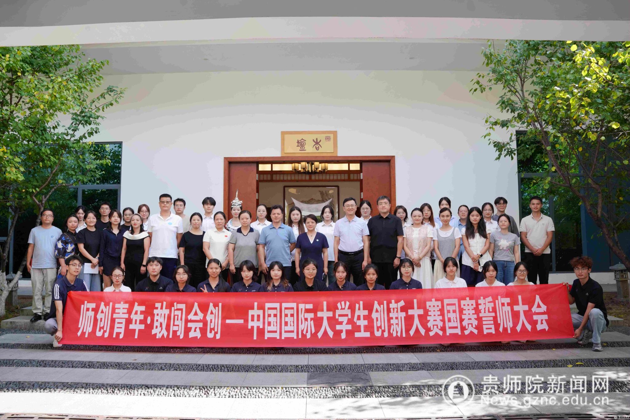 本网讯 9月19日下午,2025年中国国际大学生创新大赛国赛决赛贵州师范学院誓师动员大会在印山书院举行。校长王蜀黔,校党委委员、副校长兼创新创业学院院长潘运,化学与材料学院、音乐舞蹈学院、体育学院相关负责人,及项目指导老师代表、学生代表、创新创业学院教师参会,会议由潘运主持。