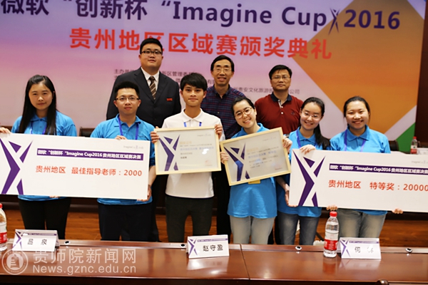 接到比赛通知后,我校教务处高度重视、认真组织,经我校大学科技园协助,共组建9只参赛队参加此次比赛。其中,由物电学院选送派出的V²MOOCs团队先后闯入复赛、决赛,最终喜获贵州赛区特等奖,并将代表贵州省的唯一参赛队参加在海南三亚的微软“创新”杯中国区半决赛,团队指导老师杜宏博获得“最佳指导老师”奖。该赛事是由贵州贵安新区管理委员会主办,贵州省教育厅、微软(中国)有限公司支持,贵州贵安新区花溪大学城管理文员会、贵州贵安文化旅游投资有限公司承办,贵州师范大学协办。来自省内各大高校45支参赛队伍,分别在世界公民、游戏和最佳创新3个竞赛项目现场展示自己的作品和创意。