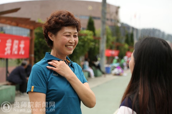 在趣味运动比赛现场,化学与生命科学学院的院长王超英接受了校园记者的采访。据王超英所说,每一年体育节的趣味运动她都会作为一名运动员参与教师组的趣味运动比赛,今年也参与趣味篮球接力、气排球着落点、飞龙传接三个项目。