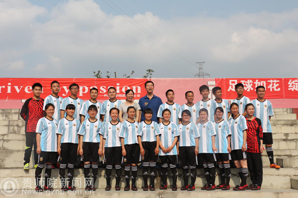 本网讯 5月12日——24日期间,贵州师范学院举行了“青春三走系列活动”之第二届大学生足球超级联赛。在学校的统一组织安排下,历社学院由12名女同学和12名男同学组成的代表队以饱满的热情参加了此次比赛。