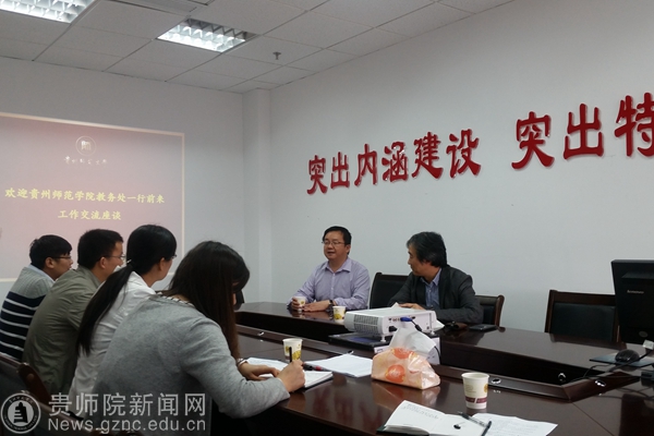 本网讯 为进一步提高实践教学管理水平,5月24日,我校教务处副处长任翠娟率实践教学管理相关科室人员赴贵州师范大学教务处学习交流。交流座谈会在师大教务处会议室举行。师大教务处处长罗永祥,副处长姜山、周勋及实践教学相关科室负责人参加了座谈会。会议由罗永祥主持,罗永祥对我校此次学习交流表示热烈欢迎。