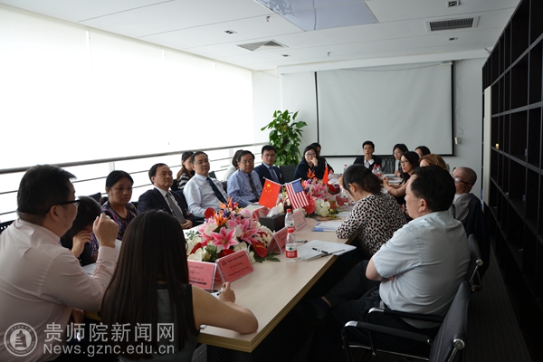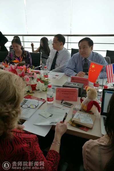 本网讯 5月23日,副校长令狐荣锋和对外交流合作处副处长梁瑞参加了北京东方国际教育中心上海分部举办的中美教育研讨会。会上,令狐荣锋与美国HGE教育集团主席卡罗、副主席袁圆、格莱德美思大学校长欧文斯进行了友好交流。他用英语向客人介绍了贵州师范学院历史沿革、规模发展、教学科研及国际交流情况。令狐荣锋指出,中外合作、开放办学是我校发展的重要战略步骤,也是我校十三五规划建设的主要内容之一,与美国高校在内的国(境)外教育机构的合作,不仅有利于我校国际化办学水平,也有利于我校实践课程建设和教学改革。他还与卡罗、欧文斯在教育学、计算机信息科学等领域探讨了双方合作的可能性。