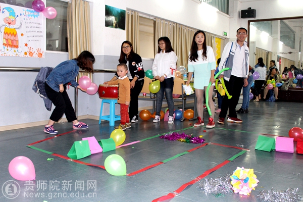 本网讯 5月27日下午1点30分,由贵州师范学院校工会主办、教育科学学院承办的2016年六一儿童亲子活动拉开了序幕。在五颜六色气球的装扮下,当天有近180名小朋友积极参与到以“快乐六一,欢乐童年”为主题的亲子活动。