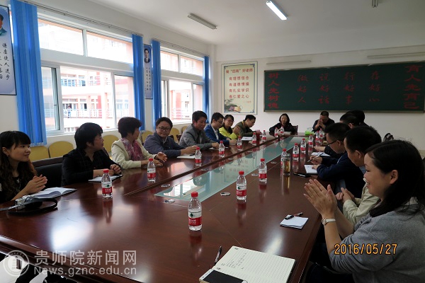 本网讯 5月27日,安顺学院思想政治理论课骨干教师黎进深(安顺学院马克思主义学院院长)一行8人到我校交流访问,交流访问分交流座谈和参观“大学生社会适应能力综合实践基地”两个环节,我校马列主义教学部部分教师参与交流访问。