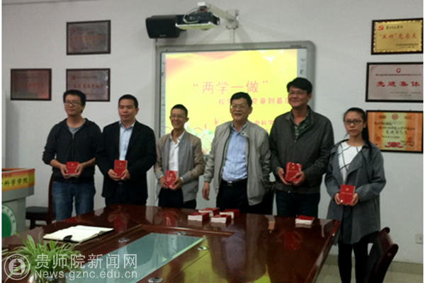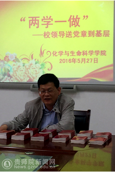 本网讯 5月27日下午,贵州师范学院校长李存雄在校组织部部长伍燕,及宣传部副部长孙筑萍的陪同下到化学与生命科学学院进行走访调研,赠送党章,并为化生学院的师生代表上党课。