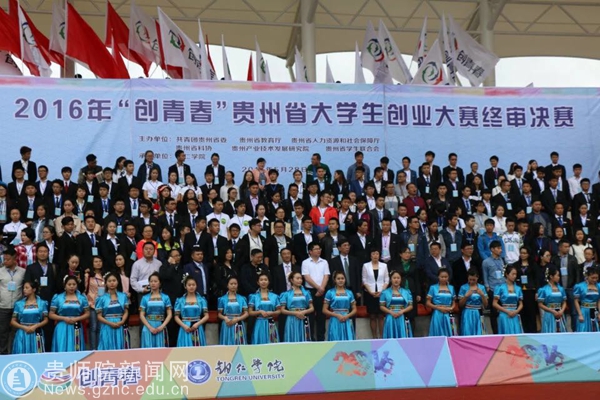 本网讯 5月28日,由团省委、省教育厅、省人社厅、省科协、贵州产业技术发展研究院、省学生联合会联合主办的2016年“创青春”贵州省大学生创业大赛终审决赛在铜仁学院隆重开幕。贵州产业技术发展研究院院长邵进,铜仁学院党委书记李树新,团省委副书记闵江涛,省教育厅高教处副处长王晓红,省人社厅就业处副处长黄明建,团市委书记张勇出席开幕式;来自全省22所高校的参赛代表队参加开幕式。