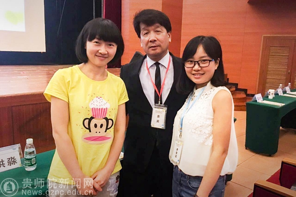 娄小韵、陈泽婧与日本早稻田大学教授前桥 明交流与合影