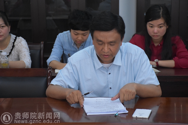 会上,李乐京首先就地旅学院学科建设,新专业申报,校校与校地及校企合作,师资建设,制度建设等方面取得的进展和成果,在日常教学管理、论文指导和答辩、实践教学、招生就业等方面的工作安排和进度进行了详细的汇报。随后吴亚平就学院“两学一做”、廉政文化进校园、党的基层组织建设、学生社团、学风教风、学生日常管理等方面工作,以及学院学科之间的平衡协作与整合、教师发展、实践教学等方面的工作开展进行了详细汇报。罗绪强从协助书记和院长管理好常规教学的角度进行了汇报。地旅学院旅游管理教研室主任李倩、办公室主任罗光杰、地理科学教研室副主任安佑志、教师代表白易分别从学科和专业发展,学生实践情况和就业情况,参与贵州旅游研究院(筹)建设情况,学院队伍建设以及对新教师的指导和帮助等方面表达了自己的观点和看法。芦军、邹晓青、薛璞、刘宪邦对地旅学院在学生工作,宣传工作,党政办工作等方面取得的成果进行了肯定,并就老师们提到的问题进行了一一解答。