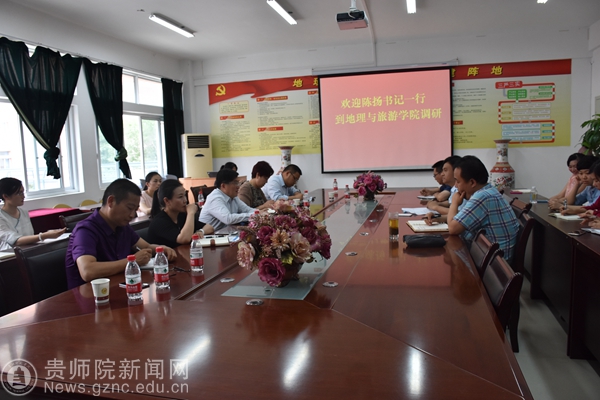 本网讯 6月1日下午,校党委书记陈扬率校党政办主任芦军、宣传部部长邹晓青、学工部部长薛璞、教务处副处长刘宪邦等相关部门负责人深入到地理与旅游学院开展调研并指导工作。地理与旅游学院党委书记吴亚平、院长李乐京、副院长罗绪强以及21名教师代表参加了调研座谈。