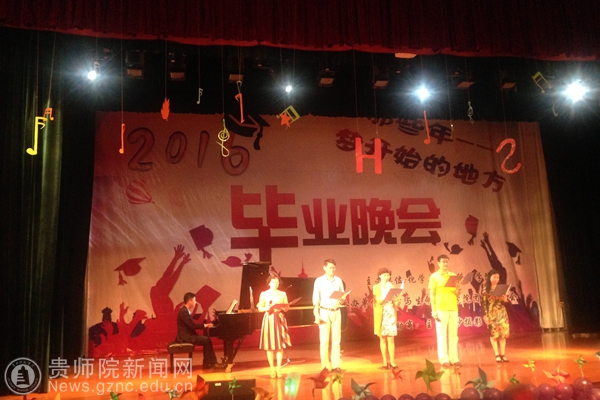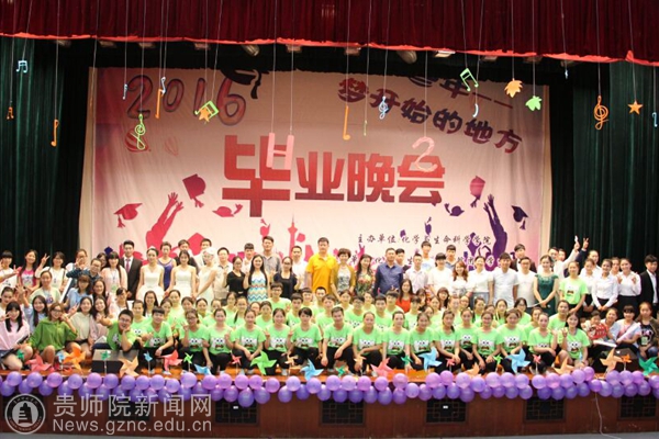 学工部副部长刘讯、校团委副书记傅小芳、网络信息中心副主任袁再龙以及化生学院党委书记韩宝银、院长王超英、党委副书记干正洋、副院长宋万倨、王毓出席了晚会现场,参加本次晚会还有化生院的老师及全体毕业生。晚会由佘乾文、曾华舜、钟慧、耿顺刚主持。