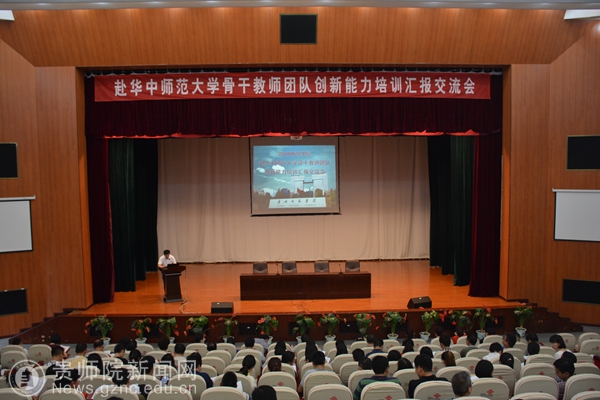 本网讯 6月3日下午2:30分,我校赴华中师范大学骨干教师团队创新能力培训学习汇报交流会在逸夫楼演播厅举行。校长李存雄、副校长郭文、党政办、学工部、教务处、人事处、科研处、教学质量监测与评估办公室等部门领导、各学院院长、教师代表、培训班学员共计320余人参加会议。会议由教师工作处处长谢笠主持。