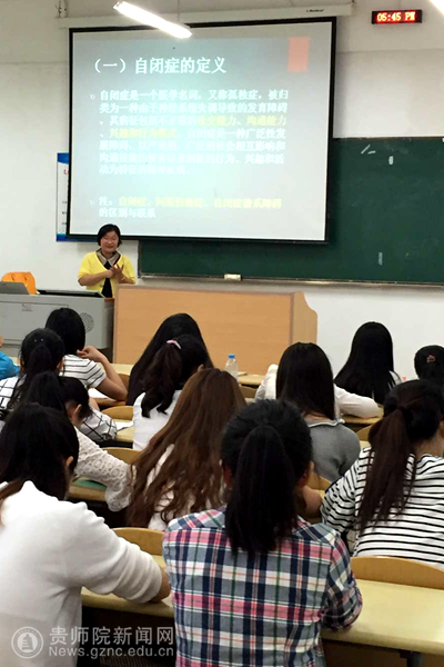 作为目前贵州第一个海外留学的特殊教育专业博士,陆艳结合自己的学习研究与工作经历,以自闭症的认识与康复为主题,从自闭症的认识,自闭症的康复方法等方面展开讲座。讲座过程中,陆艳博士充分发挥个人的研究专长,介绍了大量的典型案例,使讲座内容既有专业上的理论深度,同时,又有操作层面上的实践可行性。