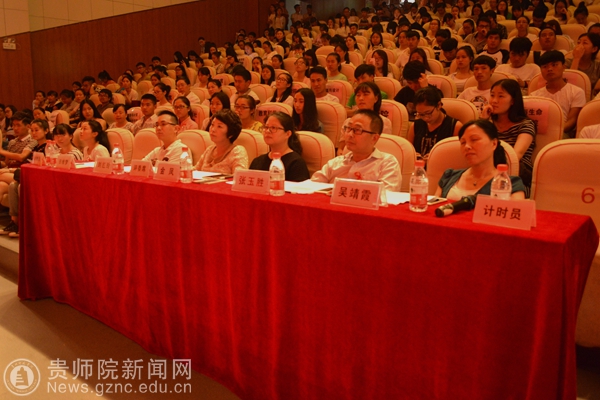 本网讯 6月14日18:30 ,贵州师范学院第二届大学生辩论赛决赛暨艾滋病防控辩论赛在逸夫楼演播厅举行。本次辩论赛辩题紧扣社会热点,辩手们在唇枪舌剑中展现了师院人独有的人文关怀,四支代表队一路过关斩将,成功晋级本次决赛。本次大赛由共青团贵州师范学院委员会、经济与政治学院基层团委携手承办,学工部、宣传部协办。校团委书记张婷、经济与政治学院党委书记周永杰、学工部副部长郝进欣莅临本次大赛,科研处处长金凤、马列部基础教研室主任张玉胜、历史与社会学院党委副书记吴靖霞、外国语学院党委副书记刘红玲、瓮福集团有限公司机关团工委书记田维梦担任本次大赛评委,来自13个学院的近500名在校学生齐聚一堂,共享辩论盛事,气氛热烈。