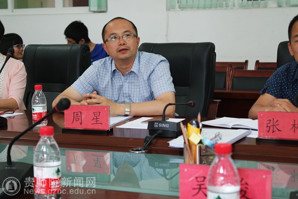 金凤、吴俊、申满秀、李乐京、马关辉、唐志明、白瑞荣等人也先后就具体合作项目、方式方法展开交流。周星等人对我校前期开展的非物质文化遗产研究、保护等工作给予充分肯定,并表示,校地共建“贵阳市非物质文化遗产研究中心”是一个很好的探索。市文化出版新闻广电局领导非常支持此项工作,市局和贵州师范学院在很多方面有着很广泛的合作空间,就具体非遗项目来说,香纸沟“土法造纸”的创新利用、石头寨“文化空间”的抢救保护、四印苗“簪汪古歌”的有效传承、水东土司文化研究等项目急需贵州师院的专业研究人员提供智力支持。周星建议,学校和市局可以定期召开联席会议,集中协商合作路径。