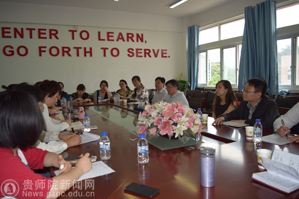 调研会上,余学军向陈扬一行汇报了外国语学院的基本情况和工作思路。2016年是我校本科教学合格评估过后的整改之年,外国语学院紧紧围绕评估整改的总基调和“一型两性”、“一体两翼”办学定位,以评估整改为契机,狠抓巩固成果,强化规范建设。一是我院围绕“应用型人才”的培养目标进行大讨论,使教职工对应用型人才的培养有了更为全面和深刻的理解,进一步规范和完善了本科应用型人才培养方案。二是根据教育部评估专家提出的意见和建议,结合我院的基本情况进一步规范日常教学管理,强化教学档案建设,进一步规范命题试卷和毕业论文整改,鼓励教师进行教学创新,为培养合格的应用型人才奠定坚实基础。三是为确保应用型人才培养的质量,我院从人才培养方案的制定到课堂教学再到毕业论答辩等环节均聘请校外专家和一线专家参与,确保人才培养符合地方人才市场的需要。第四是产教融合。进一步加强校外实习实训基地建设,积极探索与美国饭店协会教育学院、句酷批改网等多家单位合作,为我院学生实习实训提供了良好的环境。最后是科研工作,近年来科研工作稳步推进,卓有成效,我院连续三年获批国家级课题。