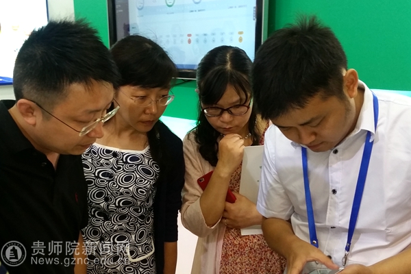 郭文一行首先来到国家教育公共服务平台展区,了解了各省市教育信息化建设的框架、成果;然后分重点参观考察了基于云计算技术、为教育机构量身打造的云服务平台,重点考察了数字化校园整体设计方案及产品,了解如何通过整体设计方案构建精细化的校园管理,构建面向教师的辅助教学系统,构建面向学生的个性化发展空间。还现场感受了未来课堂,远程互动课堂、虚拟实验室、微课制作系统,创新教育,VR课堂,主观题自动批改系统等案例和相关教育产品。