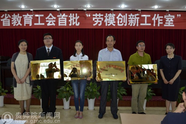 授牌仪式上,王游勤首先宣读了贵州省教育工会关于命名首批“劳模创新工作室”的决定,王慧、王游勤为我校“杜宏博创新工作室”、“邓明森创新工作室”、“姜金仲创新工作室”进行了授牌。