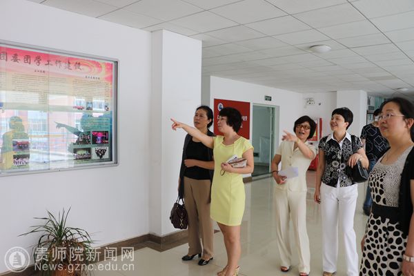 汇报会结束后,王慧一行参观了我校外国语学院的党员活动室并与青年教师党员代表作了亲切的交流。同时,朱琴在参观了外国语学院的“双语党章书法展”时希望贵州师范学院能在“省级语言文字示范校”的创建上有动作,充分发挥师范院校在语言文字工作中的引导和示范作用,积极推动我省语言文字工作不断发展。
