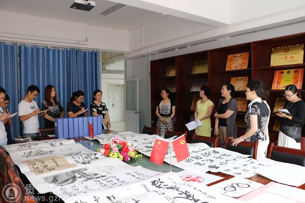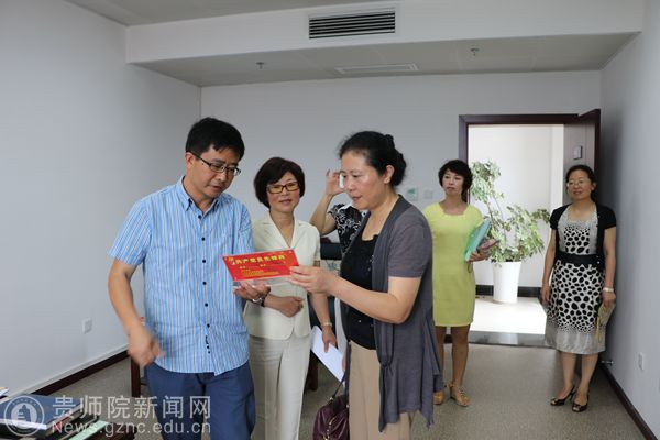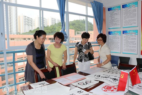 汇报会结束后,王慧一行参观了我校外国语学院的党员活动室并与青年教师党员代表作了亲切的交流。同时,朱琴在参观外国语学院的“双语党章书法展”时,希望贵州师范学院能在“省级语言文字示范校”的创建上有动作,充分发挥师范院校在语言文字工作中的引导和示范作用,积极推动我省语言文字工作不断发展。