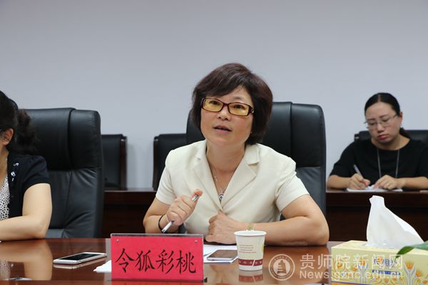 令狐彩桃首先对王慧一行的莅临指导表示热烈的欢迎,随后,她从总体部署、工作成效与特色亮点三个方面汇报了我校“两学一做”学习教育的开展情况。并着重介绍了“送学上门”、“创新党课”、“把脉扶贫”、“亮牌行动”这些自选动作实效与成果,展示了我校“两学一做”学习教育“真学真做、学有成效,做有方向”的正能量形象。