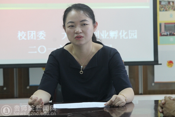 会议伊始,张婷对此次颁奖典礼作了简短的发言,她指出:“暖春计划”是贵州师范学院为了资助优秀并且家庭贫困的学生而设立的助学基金,其创始人是贵州师范学院数计学院的段兴悦和赵卫生,也是我校大学生创业孵化园学生自助超市的负责人。暖春助学金,源于段兴悦和赵卫生感恩学校为他们提供了创业的平台,为了将这份感谢落实到实践,反哺母校所做出的举动。同时,两位发起人还在学生自助超市为我校学生提供了10个勤工助学岗位,对家庭贫困的学生给予生活补助。张婷也鼓励这次获奖的同学们也能够像两位学长一样,不仅仅是接受别人的帮助,而且还要把别人的这种爱心,传递给身边的每个人,让身旁的人都感受到春的暖意。
