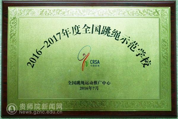 贵州师范学院开展跳绳运动以来,致力于打造高校高水平运动队伍建设,着力推广和拉动周边学校开展跳绳运动并取得了良好的社会反响,在本次大会中成为唯一一所荣获“2016-2017年度全国跳绳示范学校”称号的高校。