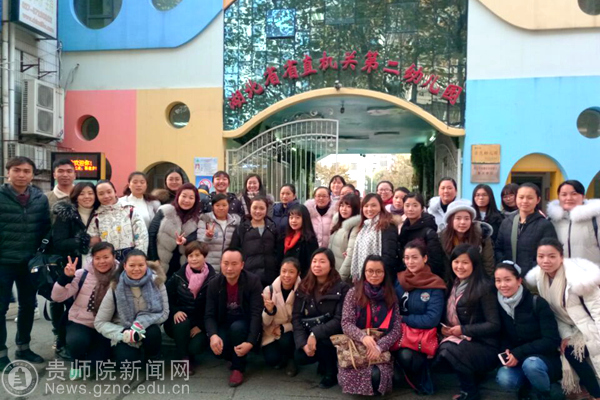 本网讯 11月24日上午,在武汉市武昌区教培中心和武昌区四所跟岗幼儿园的引领下,我校“国培计划(2016)”教师团队置换脱产研修项目43名学员在罗婷老师、冯静老师的带领下赴湖北省省直机关第二幼儿园观摩武昌区精心挑选的三节社会领域活动。