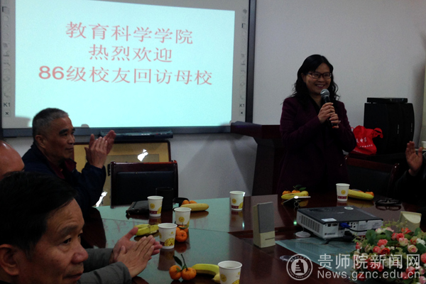 “向温情频频祝愿,展成就报告校园”,参观完宁静、整洁的校园,一行来到教育科学学院。刘红、彭祥友代表教育科学学院组织了“欢迎86级回访母校”的茶话会,茶话会由退休教师江华勋主持。茶话会上,郭文代表学校表达了对86级回访母校的热诚欢迎和对母校发展关注、支持和帮助之情的感谢,并介绍了贵州师范学院发展历史和情况。刘红代表教科院表达了对回访一行的热烈欢迎,介绍了教科院的发展情况,表达了得到校友持续宣传和支持的期待。另外,李贤芬、赵德肃作为原教管系主任分别做了发言讲话,其他老师分别做了发言,细数过往师生相处之事,情谊真切,宛若眼底。齐圣富作为老班长,代表回访学生一行做了发言。茶话会最后一个话题也是最精彩的是每位毕业生介绍30年来自己的人生历程、取得的成就和人生感悟,深切表达对母校的关心和期望。