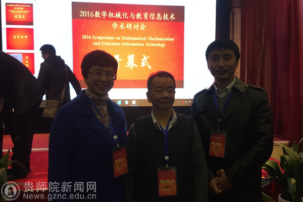 本网讯 11月25日-26日,2016年数学机械化与教育信息技术研讨会在成都召开,中国科学院院士张景中、中国科学院院士周巢尘等知名专家出席研讨会,来自国内各高校、科研机构的100多名代表参加了研讨会,我校“贵州省教育大数据技术与教育数学院士工作站”的院士团队是张景中院士团队,院士工作站管理办公室负责人肖宏治副院长和“贵州省普通高等学校教育大数据技术与应用工程技术研究中心”负责人熊伟程出席了研讨会。
