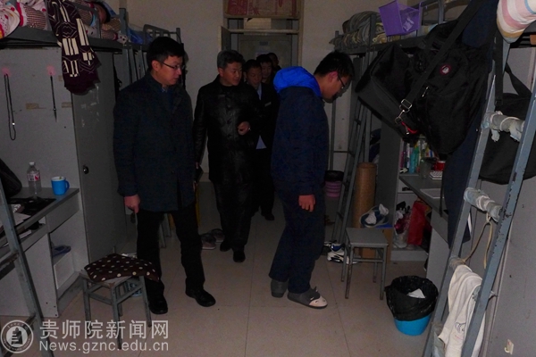 本网讯 11月30日上午,省综治委校园及周边治安综合治理专项组第十四组到我校检查综治工作。检查组由省食药监局稽查专员谢明军、省教育厅安稳处主任科员杨普安、贵阳市公安局经文保支队民警胡坚组成。