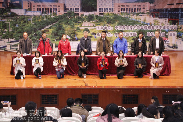 会议伊始,三名获奖的优秀选手分别进行了教学技能的现场展示,内容生动、形式新颖、教学方法多样,博得现场观众阵阵掌声;接着,贵州师范大学学前教育博士李旭对比赛情况进行了点评;随后,由教育科学学院学生带来的儿童剧《我选我自己》、苗族歌舞《干一杯》,充分展现了我校学前教育学子的风采,也给现场嘉宾留下了深刻的“贵州印象”;紧接着,中国教育技术协会微格教学专委会秘书长杨华教授进行总结讲话,他充分肯定了此次比赛的成绩,对参赛学员的完美表现、领队教师的辛勤指导、大赛承办方工作人员的热情付出表示由衷的感谢,并对学前教育的改革和发展提出了新的希望;最后,与会领导分别宣读了在活动设计、教学技能中获奖的人员名单,并向获得特等奖的选手颁发了证书。