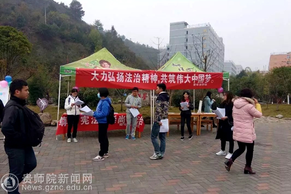 本网讯12月5日我社在鉴湖旁开展了关于12.4宪法宣传日的宣传活动。今晨,在社长组织以及各部门成员的分工合作下,完成了最开始的活动场地布置。在各自的活动岗位上,社员们热情的向同学们宣传宪法日的相关内容,积极地投入到活动工作当中。期间有许多对法律感兴趣的同学向我们咨询关于宪法日的相关内容和参加我们安排的有奖答题活动,内容的丰富与精彩使得同学们驻足观看。