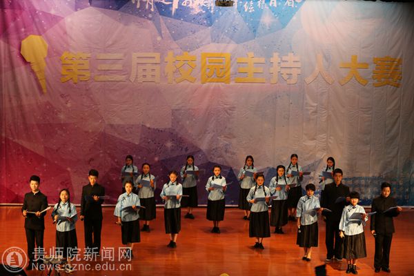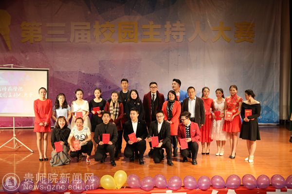 本网讯 12月6日,贵州师范学院第三届校园主持人大赛决赛在逸夫楼演播厅隆重举行,党委宣传部部长邹晓青、校团委书记张婷、学工部部长薛璞、文学院党委书记韦丹、贵州广播电视台主持人徐闯出席了本次大赛并担任了评委。