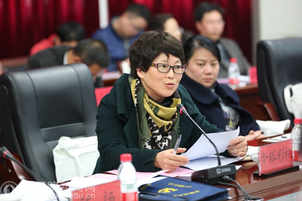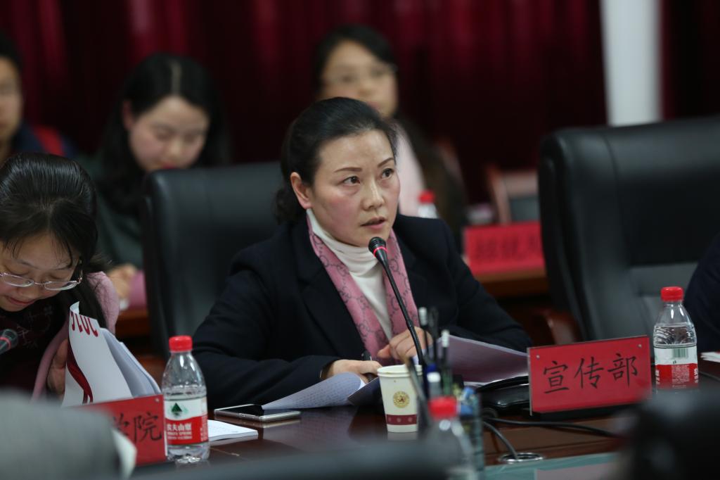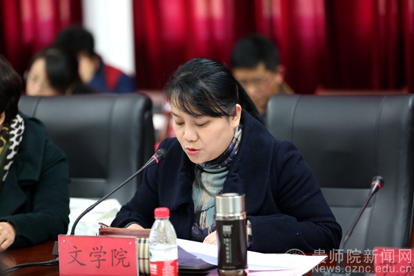 文学院韦丹、数计学院肖湘萍、艺术学院付巧、继教院王刚、人事处严兴诚、对外交流合作处张瑶分别就本单位2016年宣传思想工作经验及做法作主题发言。随后,化生学院韩宝银、招就处宋婷禹、校团委张婷在会上作交流发言。