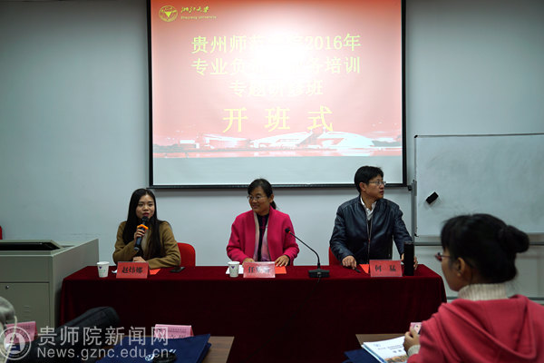 上午开班仪式正式开始,由浙江大学继续教育学院行业培训部主任何猛、贵州师范学院教务处副处长任翠娟、班主任赵炜娜出席了开班仪式。何猛主任介绍了浙江大学的悠久历史和与贵州的情缘,并对学员在培训期间的制度和纪律做出了相关的要求。何猛主任希望学员能够带着问题听课,积极与专家进行交流。任翠娟处长传达了学校领导对学员的相关要求,并对这次培训的成果充满着期待。