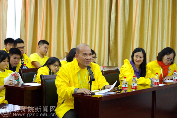 接着,参加冬令营的领队老师代表发言,他表示,终于到了期待已久的冬令营,我们有着同样的肤色,共同的文化,流着大中华民族的血,我们都是龙的传人。作为华裔同胞看到了中国壮丽的山河流水,看到了中国跨时代发展而深感自豪,感谢国侨办、省侨办和贵州师范学院,让他们得以参加此次活动回到中国寻找他们的根,去体会原滋原味的中华文化精髓。他们会同营员们一样,认真学习更多中国文化,凝聚华人力量,为中国文化发展贡献一份力量。