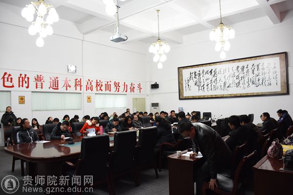 本网讯 12月29日下午,应我校邀请,贵州省哲学社科规划办主任蔡中孚和钟西辉老师莅临我校指导2017年度国家哲学社会科学基金项目申报工作。会议由科研处处长金凤主持,学校哲学社会科学类博士、省哲社在研项目负责人以及其他拟申报教师、科研处全体人员参加了会议。