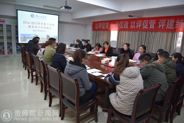 本网讯 3月1日上午,教务处新学期工作会议在文韬苑教务处会议室召开,副校长郭文到会调研指导,教务处全体工作人员参加会议,会议由教务处处长熊世桓主持。会议听取了教务处上学期及开学各项工作情况汇报并着重对本年度本学期教学管理工作进行研究和部署。
