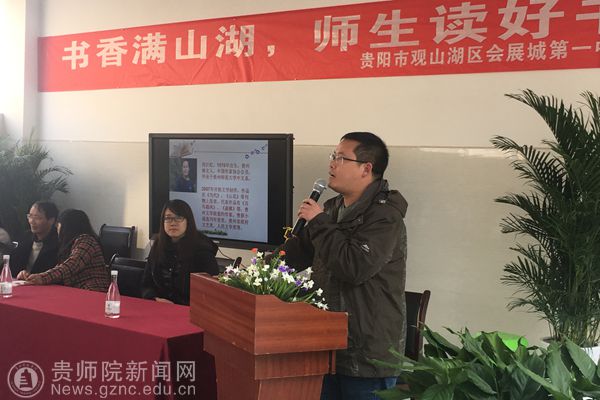 本网讯 为了进一步强化师范类专业的教师教育特色和优势,深入了解中小学教育实际和教改现状,文学院加强与基础教学单位的交流与合作。2月28日下午会展一中举办了“书香满山湖、师生读好书”系列活动之“作家进校园”活动。参加此次活动有文学院党委书记韦丹、院长吴俊、教师杨波、杨兴萍、詹峰;同时,文学院还邀请了贵阳市作家协会主席肖江虹参加活动。