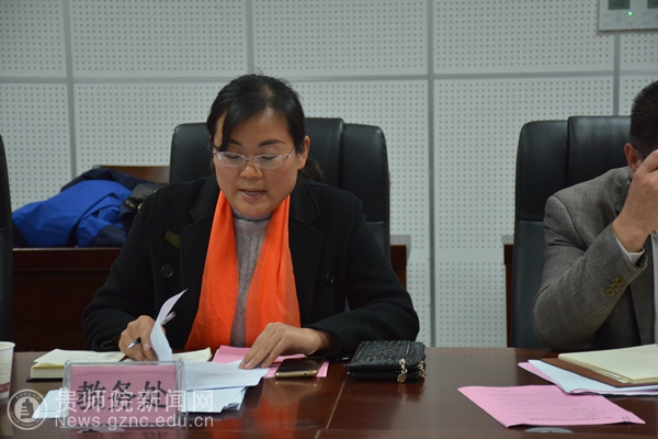 郭文作了讲话,她围绕五个方面对教师培训工作提出要求。第一,整体规划,突出重点。我校青年教师比例大,主要依托于二级学院,首先制定好培训方案,明确培训目标,掌握好培训路径、方法等;结合高校审核评估、师范专业认证工作对教师队伍发展目标要求,突出教师教学技能提升的培训;第二,以校为本,分层培训。立足于本校优质资源,发挥本校名师的引领、辐射作用,同时将骨干教师外派进行更深层次的培训。此外,要将师德培训落到实处,加强教师职业道德培训;第三,完善政策,协同发展。加强政策的引导性和督导性,从而改变教师培训观念,将“要我培”转变为“我要培”。第四,改革创新,打造特色。加强观念、理念和体制、机制的改革创新;开展多种形式的教师培训,打造教师培养培训特色;第五,加强研究,做好设计。根据学校“十三五”规划,在研究的基础上,提高教师培养培训的实效性,同时,做好顶层设计,根据教师的个人发展需求,做好教师职业生涯规划。