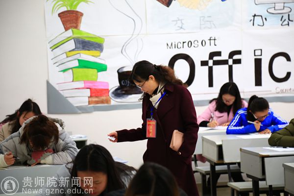 考试当天,我校考点主考郭文副校长在教务处处长熊世桓、副处长任翠娟的陪同下对贵州师范学院、贵阳市乌当新天学校两个考点进行巡视。郭文认真巡查了考场环境及监控室,对此次考试考务组织工作和考试纪律给予了充分的肯定。巡考期间,郭文强调教务处和各学院要高度重视教师资格考试,要求各学院领导对考场逐一巡查和监督。考试过程中,考试秩序井然,考务、监考人员认真落实郭文校长的指示,工作一丝不苟、认真负责。考生严格遵守纪律。考后,考务人员将试卷按照规定认真核对、密封,及时押送试卷。本次考试我校考点无一例违纪出现,考试圆满完成。
