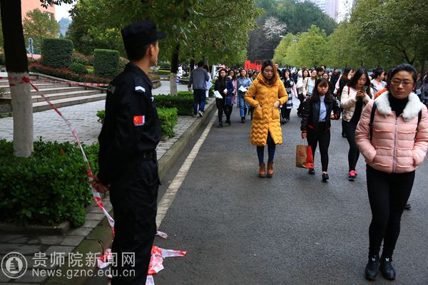 本网讯 2017年上半年全国中小学教师资格考试于3月11日举行。我校考点本次报考人数达7575人,共计13648科次,设有150个考场,考场分布在本校的文韬苑、知行苑、逸夫楼教学楼和贵阳市乌当新天学校校区。考试分三场进行,近400名教职工参与了考务工作。