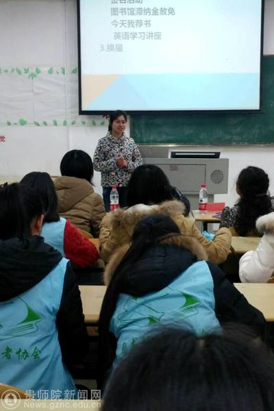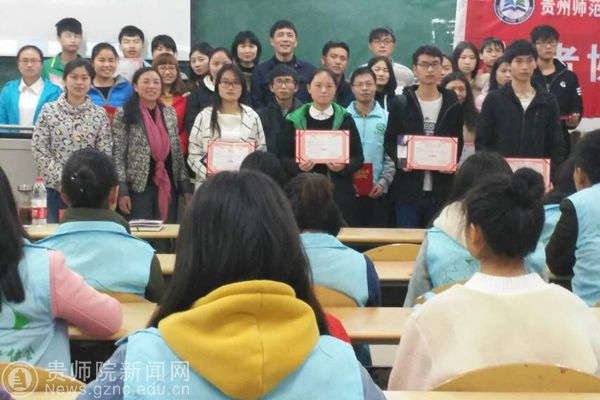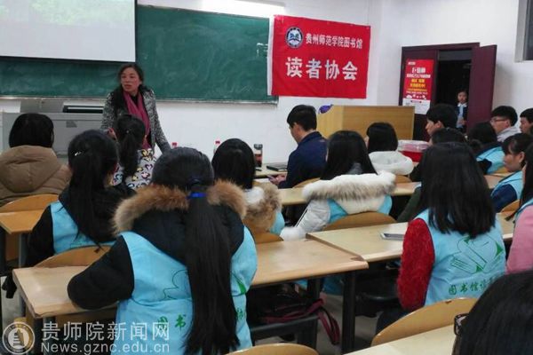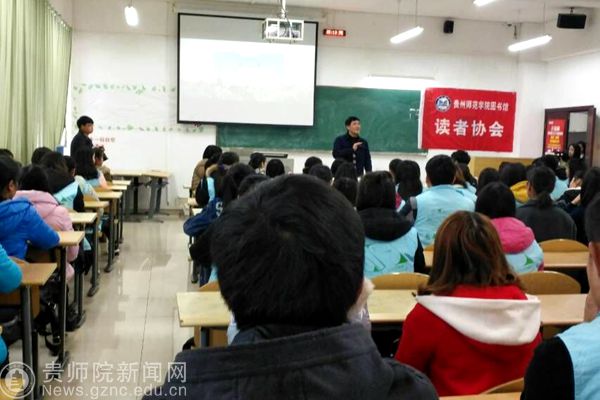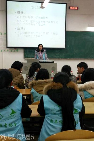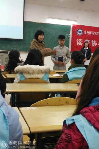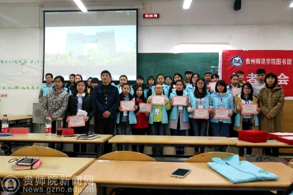 本网讯 贵州师范学院图书馆读者协会“2016年度总结大会暨三行情书颁奖典礼”于3月15日下午5点在逸夫楼304教室成功举行。出席嘉宾有图书馆馆长韩山、三行情书主评委罗勤老师、协会指导老师冯涛、代金晶、读者协会成员及三行情书参赛获奖者。此次活动的主要目的是对协会2016年度的工作进行回顾总结,对在此期间表现优秀的成员进行表彰,对其工作给予肯定,以及对三行情书获奖者进行颁奖。