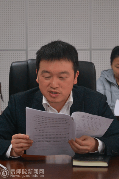 刘俊伶首先介绍了开展青年教师校内行政岗位实践锻炼工作的目的和意义,旨在进一步提高我校青年教师的综合素质和实践能力,整合校内人力资源,强化内部管理,促进学校发展。并就《贵州师范学院青年教师校内行政岗位实践锻炼实施办法(试行)》(贵师院发〔2016〕72号)等文件精神从工作原则、工作目标、实践锻炼对象和时间、实践锻炼组织和考核等方面作详细的政策解读和说明。