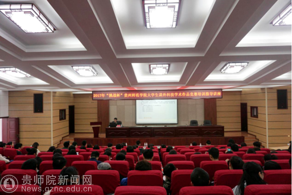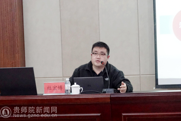 本网讯 2017年“挑战杯”贵州师范学院大学生课外科技学术作品竞赛于4月中旬正式举办。3月29日下午,我校团委在明义楼道德讲堂开展了2017年“挑战杯”大学生课外科技学术作品竞赛培训讲座。贵州师范学院大学科技园总经理、智电大学生创新训练中心副主任、长期从事大学生创新创业竞赛指导工作的老师杜宏博担任此次培训的主讲嘉宾。校团委书记张婷及各学院负责创新创业工作的分管领导和指导老师参加了此次讲座,培训由校团委社会实践部副部长张维域主持。